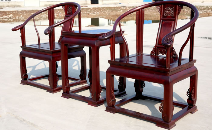 江蘇中尊木業有限公司客廳系列產品:博古架、皇冠圈椅三件套、皇冠圈椅三件套、如意茶桌六件套、如意供枱、沙發十件套、組合電視柜等。
