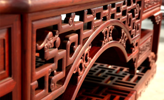 流程三雕刻工序 為了讓紅木家具看上去更美觀,在木工工序完成之后一般都會用一些或簡單或復雜的雕花來進行裝飾,也就是行業中所說的雕刻紋飾。雕刻紋飾必須在“認榫”完成后進行,因為“認榫”時需要修整,如果先做好雕花再開榫,紋理很難保證雕花部件都在同一平面上,而此時為了保證雕花...